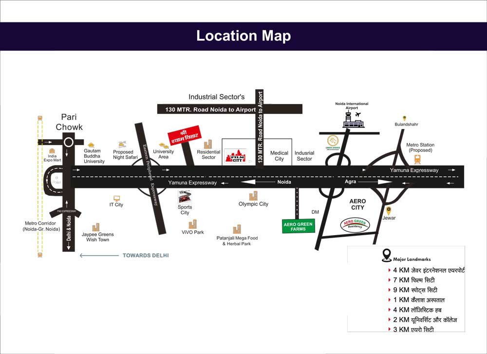 It is strategically located in the heart town and provide unparalleled accessibility to major landmarks such as Noida International Airport, Film City, Tappal Bajna Industrial Corridor, Logistic Hub, Olympic City and the upcoming American and Australian Cities etc.